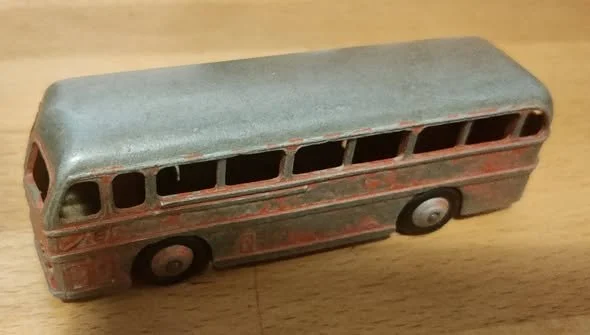 This Royal Tiger Dinky Toys coach (No.282) reached our Heritage Centre with virtually all its red paint missing.